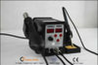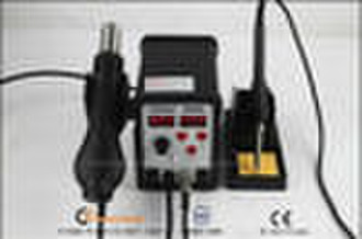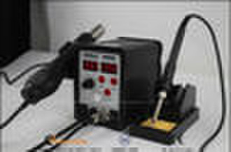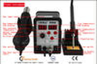 YH-898D SMD rework station Power consumption 700W Gun temperature range100-450oC Soldering Iron Temperature range200-450oCGun typeBrushless fan Air flow:120L/MIN Soldering Iron typeBlack handleGun heater materialNickel-Alloys Soldering Iron heater materialCommon heaterGun heater resistance74Ω Soldering Iron heater resistance45Ω Model NO. Inner box Dimension(cm) Outer boxDimension(cm) QTYProduct weight YH-898D 27*16.5*14.5 57*36*32 8pcs 3kg Remark: Specifications and design subject to change without notice *MAIN FUNCTION1.Comfortable portable handheld and the Digital LED display.2. Microcomputer control,warming-up quickly. 3. Adjust the air flow and temperature control rotatin. 4. Refer to the instructions included with three kinds of nozzles (big,medium and small) replacement part. 5. Would replace the part if the resistance value is incorrect. 6. When the temperature is less than 70C, can stop rotation automatically. 7.Intelligent system that could alarm , Fault detection automatically. 8.This product is ESD-protected. 9.High-quality resistance good for long service life 10.Shell using alloy material, elegant appearance. 11.Safe solder QFP, PLCC, BGA and other temperature-sensitive components. 12.Intelligent detection and cool airflow features. 13.Green lines and high-quality silicone body heat good for extend life and save power. Whats in the box : * main unit + gun + power cord * guide * soldering iron * soldering iron holder * 3 nozzels These are 220V units you may need a transformer to use the machine in your country. we also do accept special orders for 110V / 230V/ 240V units